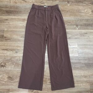 Abercrombie Tailored High Rise Wide Leg Pants Trousers Brown Size M LONG