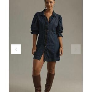 💕Anthropologie Dark Blue Denim Puff Sleeve Dress size 6