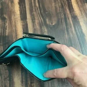 Elegant black wallet by Samantha Thavasa with heart accents. Perfect for any occasion.