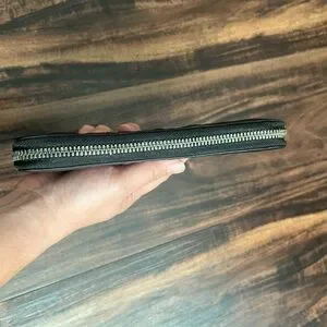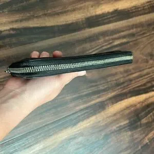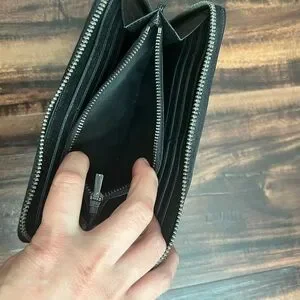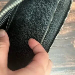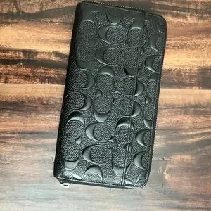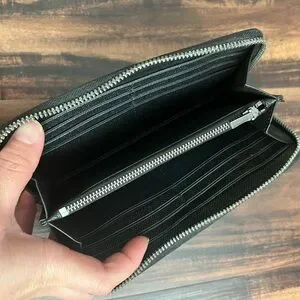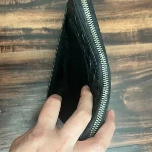 Sleek and stylish black embossed leather wallet, perfect for any occasion.