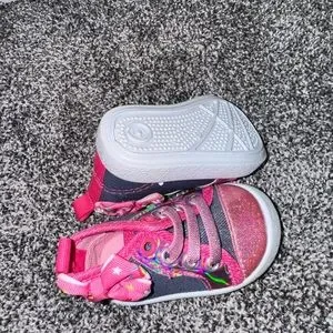Stylish and comfortable Nike kids shoes in a vibrant purple and white color scheme. Perfect for active play and everyday wear. Nikes is 2c but all the shoes fit like baby 1. Baby uggs so comfy in the inside. Those two were worn maybe twice. But when she couldn’t walk. The Jean shoes and Dress shoes have never been worn. Baby vans also never been worn. All 5 pairs of shoes for one price.