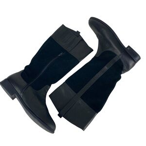 This is a pair of Vionic Downing black leather and suede knee high tall boots. Low stacked block heel. Women’s size 11. Heel measures 1”. Great condition.