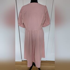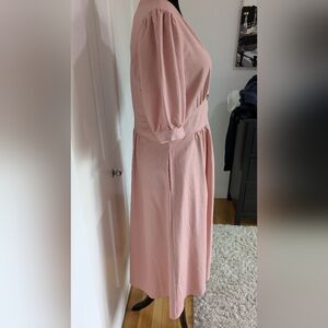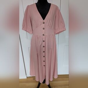 City Chic Linen Midi Dress Dusty Pink Puff Sleeve V-Neck Sundress Size 16, New!
