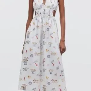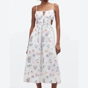 Madewell x Lisa says gah cutout midi dress Greek flower food dress NWT