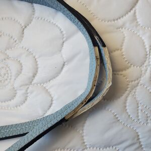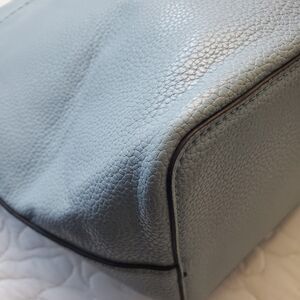 Tory Burch McGraw Tote Pebbled Leather Shoulder Bag Blue $495 Fraying Handle