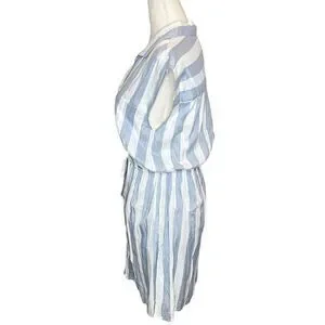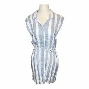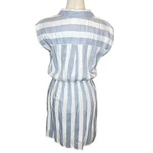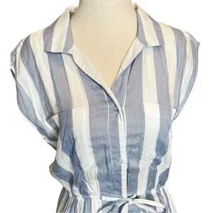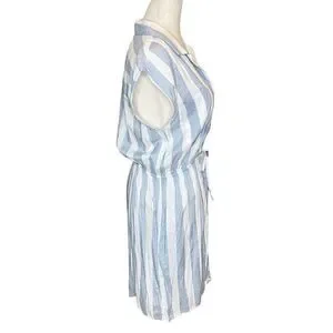 Japna Dress Womens SMALL Blue White Stripe Tie Waist Shirt Dress Short Sleeve