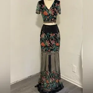L’ATISTE BY AMY Floral Embroidered Black Skirt and Blouse Set