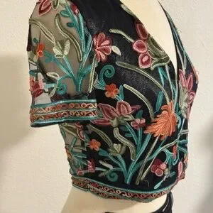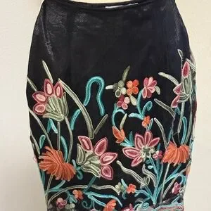 Elegant black skirt set with vibrant floral embroidery. Perfect for any occasion.
