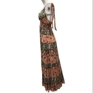 Free People Let’s Smock About It Boho Tiered Mixed Print Maxi Dress Size Small