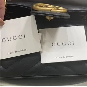 Elegant black quilted leather bag featuring a stylish gold chain. Perfect for any occasion.