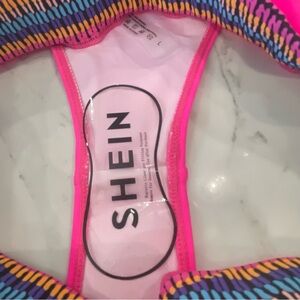 Shein Cheeky Vibrant Pink Bikini Bottoms with Multicolor Waistband