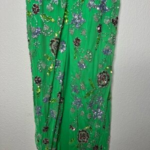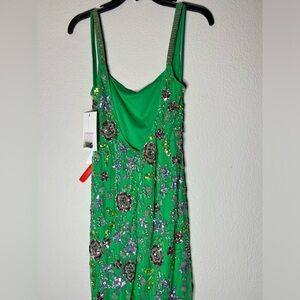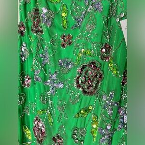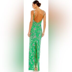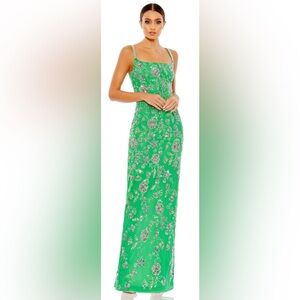 MAC DUGGAL #10808 HAND BEADED FLORAL GOWN WITH BEADED SPAGHETTI STRAPS