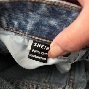 SHEIN PETITE Ripped Frayed Cut Out Straight Leg Jeans Blue Dark Wash sz. XXS