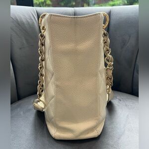 Vintage CHANEL Caviar Quilted Petit Shopping Tote PST beige
