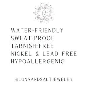 Chain is 18K PVD on Stainless Steel = Water-friendly, Non-Tarnish, and Hypoallergic