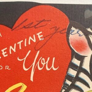 Vintage Valentine cards from the 1940s often featured animals and were printed on lightweight cardboard.