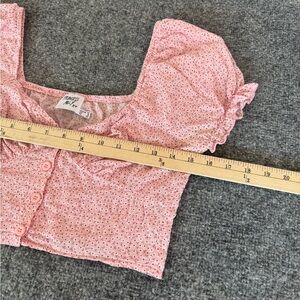 Princess Polly Women's Crop Top Puff Sleeve Pink Floral Button Down SZ 8