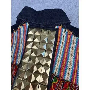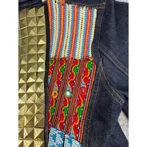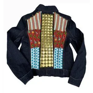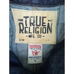 True Religion Womens M Denim CollarJacket Camden Blue Accent Embroidered