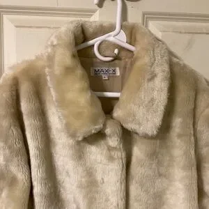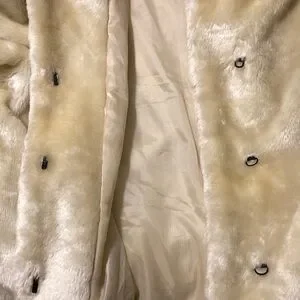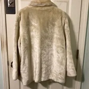 Experience ultimate comfort and style with this beige teddy faux fur coat, featuring a plush, super soft texture and a prominent collar. Its full-length sleeves add to the luxurious feel, making it a must-have for your wardrobe. Marked large but runs big and fits like an XL. Excellent condition. 2 side pockets. Machine washable. Approximately 25.5” armpit to armpit and approx 31-32” length. Gorgeous! From a smoke and pet free home.
