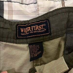 3 Pair Men’s Cream, White Plaid, and Tan Cargo Shorts Lot with Relaxed Fit