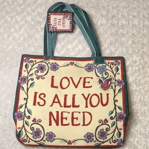 This vibrant Brighton tote bag features a beautiful floral and heart design with the word 'Love' elegantly displayed. Gorgeous new with tags bag!
