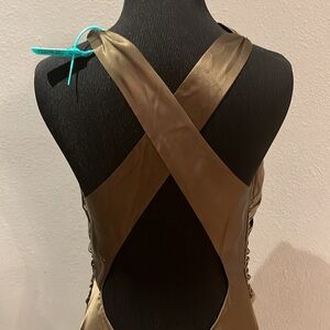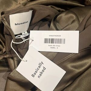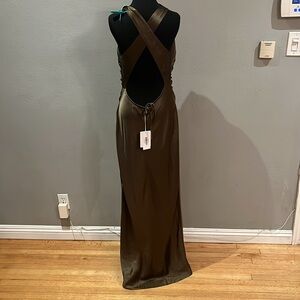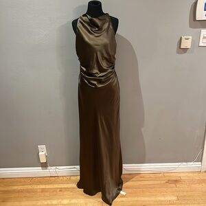 NEW NWT Reformation Anaiis Silk Dress High Neck Open Back Maxi Dress Morel Brown