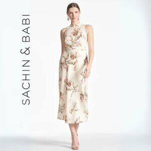Sachin & Babi Lisandra Satin Crêpe Floral Midi Dress Eggshell Venetia Petals