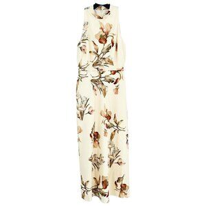 Lightweight and elegant maxi dress with delicate floral print. Features a sleeveless design, ideal for warm weather or semi-formal gatherings. The high neck design and sleeveless cut create a flattering profile, while the back zip closure ensures a seamless fit.