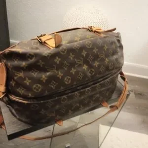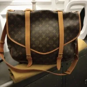 This Louis Vuitton crossbody bag features the iconic brown and tan monogram pattern, showcasing the brand's signature style. Crafted with luxurious materials, it includes tan leather trim and an adjustable shoulder strap for versatile wear. Perfect for those who appreciate timeless elegance and functionality.