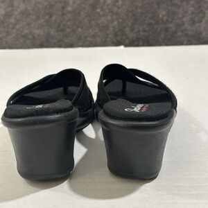 Skechers Womens Sz 9 Memory Foam Sandals Black Heel Wedge Slip On Strappy
