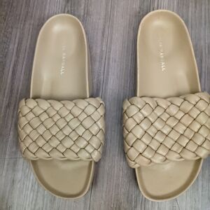 Loeffler Randall - Sonnie Woven Leather Sandals Slides | Size 7.5 | Camel Cream