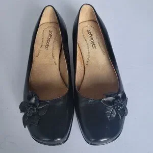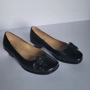 Softspots Women's Dress Shoes Pumps with decorative flower detail on the toe, a low heel, and cushioned insoles. Classic and versatile, suitable for both casual and more formal occasions