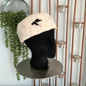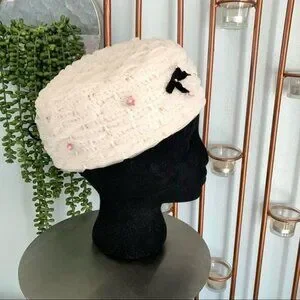 Vintage Off-White Mesh Pillbox Hat Floral Pearls