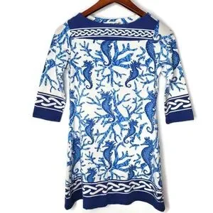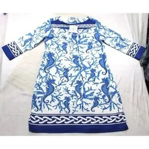 Barbara Gerwit Nautical Seahorse Coral Ocean Beach Dress NWT Large