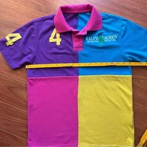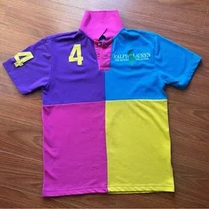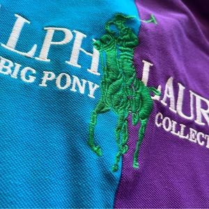 RALPH LAUREN BIG PONY COLLECTION Women Polo Shirt Size M/L Big Logo Color Block