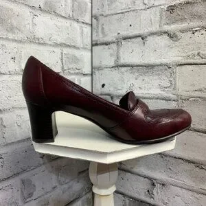 Naturalizer N5 Comfort Burgundy Leather Mid Block Heel Loafer Pump