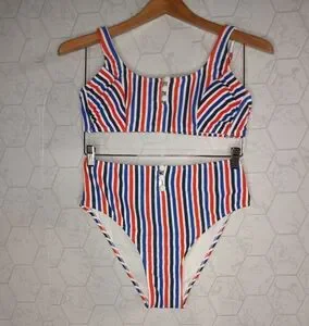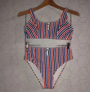 Xhilaration Juniors' Ribbed Button-Front Bralette bikini top with a Ribbed Button-Front High Waist Bikini Bottom