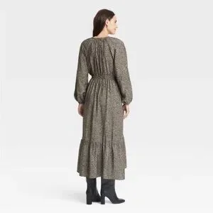 Make a stylish statement by stepping out in this Long-Sleeve Tiered Midi Dress from A New Day™. The balloon long-sleeve dress tailored in a midi length boasts a V-neck, tie-closure elastic waist and tiered high-and-low hem to add gorgeous movement to your look. Made from midweight woven fabric for comfy wear, this midi dress comes with side pockets that provide handy space for on-the-go essentials. Pair it with your choice of footwear and accessories to complete the chic look.