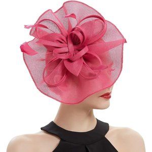 【UNIQUE FLOWER DESIGN】: This hot pink flower fascinator hat is made of sinamay fabric and real duck feather, durable and lightweight to wear, based on your style of dressing, you can use it as clip or headband individually