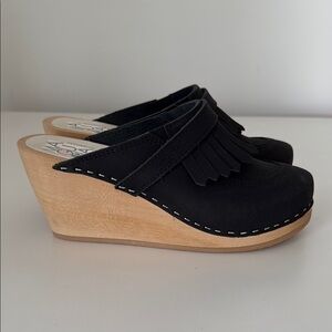 Maguba Sweden Black Fringe Wedge Clogs size 38. Brand new in box