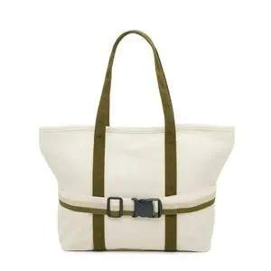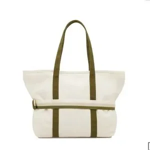 NEW Ivory/Green Canvas Tote With Travel Band