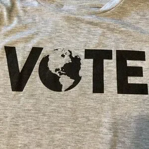 T & B Kids T-shirt. Extra Large 14/16. Heather Grey With VOTE Printed On The Front In Black. No Tags. New.