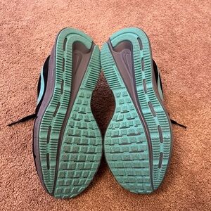 Stylish Nike sneakers in black with teal accents. Perfect for casual wear. Walked around in them one time, in perfect condition.
