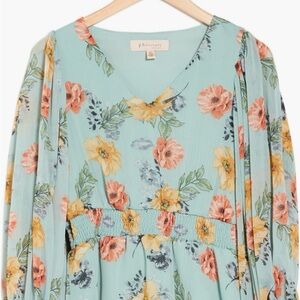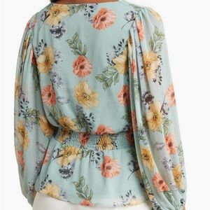 Philosophy Green Peplum Blouse with Ruffled Long Sleeves