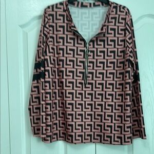 Stylish pink & black top featuring a bold geometric pattern and a chic zipper detail. Perfect for a modern, trendy look. New without tags.