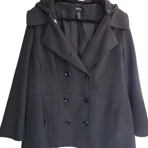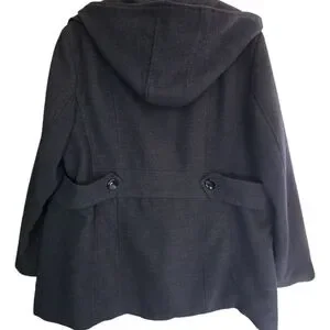 Style & Co. Womens Carcoal Grey button up Peacoat with detachable hood