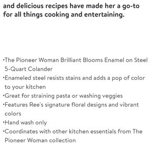 ❤️ New Pioneer Woman Brilliant Blooms 5-Quart Colander