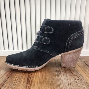 Clarks Artisan Carleta Lyon Womens Sz 10M Black Suede Heeled Ankle Booties Boots
