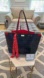 This elegant Kate Spade tote showcases a striking combination of coral and navy hues, crafted from beautiful leather. Its spacious design and structured silhouette make it perfect for carrying your essentials in style. The bag features both long shoulder straps and shorter handles for versatile carrying options.