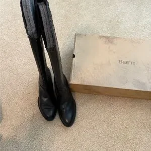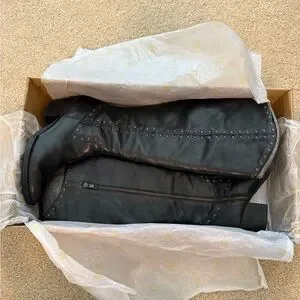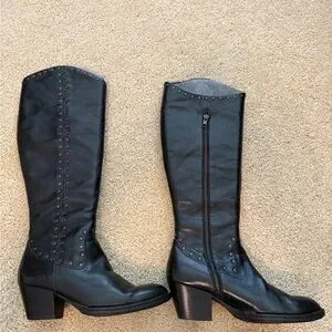 Step out in style with these elegant black leather studded knee-high boots. Perfect for any occasion, they offer both comfort and sophistication. Like New